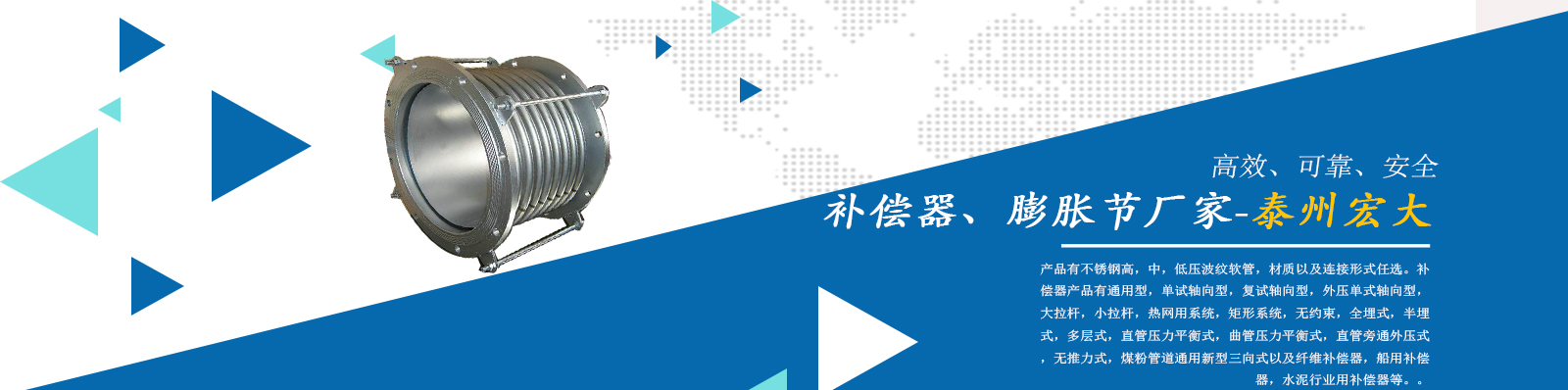 泰州市宏大機(jī)械設(shè)備有限公司是一個(gè)企業(yè)內(nèi)部管理嚴(yán)謹(jǐn),工作作風(fēng)穩(wěn)健,職工素質(zhì)水平較高,經(jīng)濟(jì)實(shí)力雄厚,產(chǎn)品質(zhì)量放心,外部形象良好的企業(yè)。本公司專(zhuān)業(yè)從事補(bǔ)償器廠家,膨脹節(jié)廠家,膨脹節(jié)補(bǔ)償器,其中有不銹鋼高,中,低壓波紋軟管,材質(zhì)以及連接形式任選。補(bǔ)償器產(chǎn)品有通用型,單試軸向型,復(fù)試軸向型,外壓?jiǎn)问捷S向型,大拉桿,小拉桿,熱網(wǎng)用系統(tǒng),矩形系統(tǒng),無(wú)約束,全埋式,半埋式,多層式,直管壓力平衡式,曲管壓力平衡…...